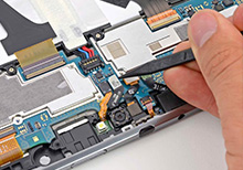 Инженер сервис центра проводит восстановление: заменяет сломанную комплектующую работоспособной заводской комплектующей